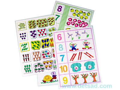 Набор карточек с изображением кол-ва предметов и соотв.цифр