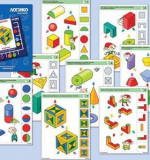 Задания комплекта направлены на развитие образного мышления как ведущего вида мышления детей дошкольного возраста, на основе которого начинают развиваться элементы мышления логического. Рассматривание предметов (в виде геометрических фигур) с разных сторон (сверху, снизу, слева, справа, спереди); мысленное перемещение и вращение в пространстве; выделение признаков цвета, формы и величины – такие действия будет выполнять ребёнок для решения поставленных в карточках задач. Задания даны в виде иллюстраций, чертежей, схем, лабиринтов.