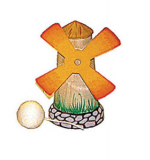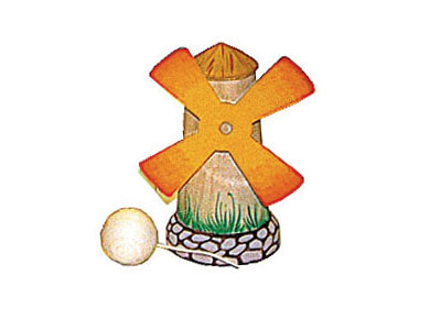Уверенно и легко потянув веревочку за шарик вниз, можно привести в движение крылья мельницы.