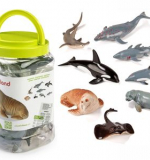 В комплекте контейнер с крышкой и 8 фигурок обитателей моря (скат, дельфин, акула, морж, кит, морской котик, касатка, рыба-молот)