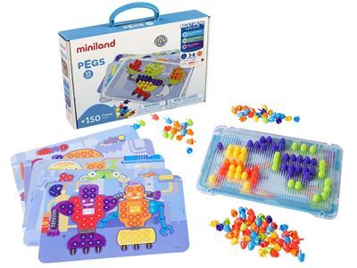 Мозаика содержит 150 элементов диаметром 15 мм, 6 цветов, 6 картинок и прозрачное поле для монтажа мозаики.