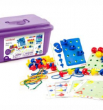 МИН 31785 Мозаика - Цвет, форма, счет / 144шт, 3цв, 4поля, 10шнуров, 18карточек, пласт, контейнер,3+