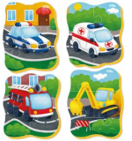 Мягкий пазл "Полезные машины", 4 пазловые картинки, 16 элементов