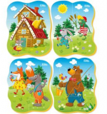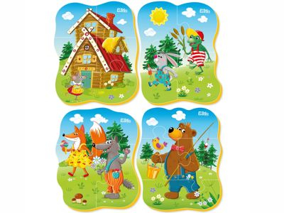 Комплектация: В наборе 4 пазловые картинки, каждая из которых состоит из 4 элементов. Общее количество деталей — 16 штук.