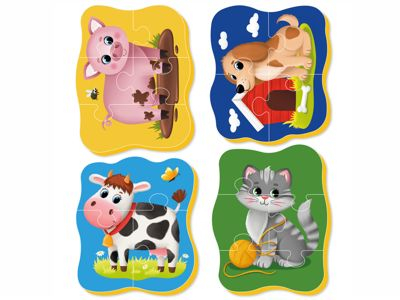 Мягкие пазлы "Домашние животные" 4 пазла, 3–4 элемента каждый, картон и изолон