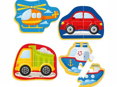 Мягкие пазлы "Транспорт" 4 пазла, 3–4 элемента каждый, картон и изолон