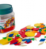 Набор из 250 геометрических фигур в удобной и прочной пластиковой банке с ручкой.
