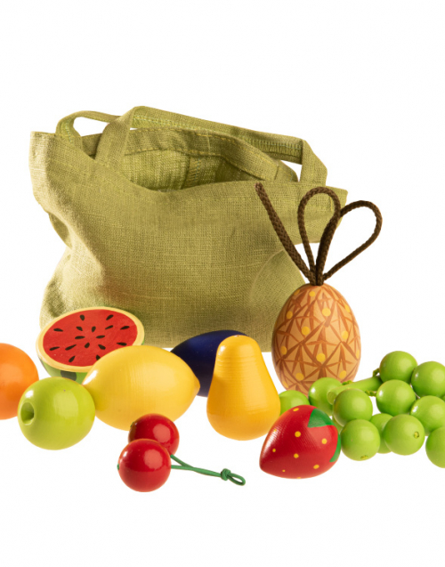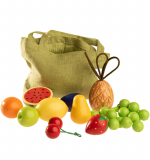 С помощью такого набора, упакованного в холщовый мешочек, можно поиграть в «Магазин», «Повара», а если ребенок совсем еще мал - то изучать вместе с мамой фрукты и ягоды.