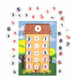 В комплект входит основа (игровое поле) с изображением домика на лужайке, а также игровые элементы в виде цифр от 0 до 10 и фигурки в виде знаков «плюс» и «минус».