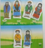 Набор пальчиковых кукол с изображенными членами башкирской семьи в национальных костюмах: дедушка, бабушка, папа, мама, мальчик, девочка.
