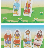 Набор пальчиковых кукол с изображенными членами русской семьи в национальных костюмах: дедушка, бабушка, папа, мама, мальчик, девочка.