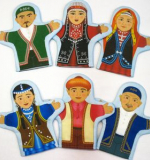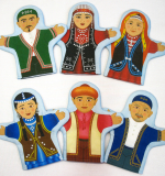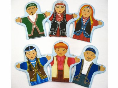 Набор наручных кукол представляет собой рукавички с изображенными членами башкирской семьи в национальных костюмах: дедушка, бабушка, папа, мама, мальчик, девочка.