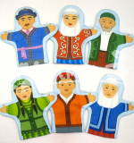 Набор наручных кукол представляет собой рукавички с изображенными членами казахской семьи в национальных костюмах: дедушка, бабушка, папа, мама, мальчик, девочка.