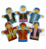 Набор наручных кукол представляет собой рукавички с изображенными членами татарской семьи в национальных костюмах: дедушка, бабушка, папа, мама, мальчик, девочка.