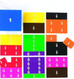 Набор состоит из 51 пропорциональных частей квадрата, демонстрирующие целые и половинные значения, третьи, четвертые, пятые, шестые, восьмые, десятые и двенадцатые части, напечатанных на каждом квадрате.