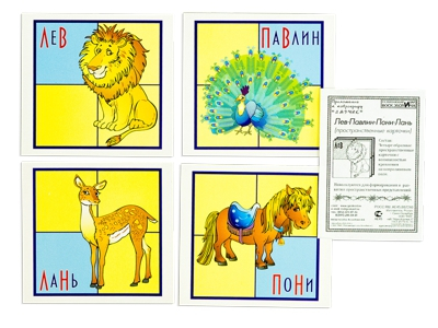 Комплектация: 4 карточки с разными изображениями животных