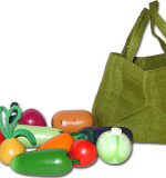 Деревянные овощи очень пригодится в игрушечном хозяйстве! Целая сумочка разнообразных деревянных овощей.