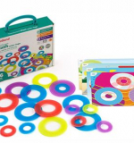 В наборе 16 колец 4-х цветов: 8 колец диаметром 9 см и 8 колец диаметром 5 см.