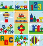 Схемы помещаются под прозрачную панель с отверстиями основы для гигантской мозаики (позиция MIN 95070), как шаблон для мозаики.