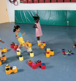Диаметр диска 14см, толщина 2см. Конфигурация дисков позволяет надежно закреплять указатели на элементах-подставках спортивно-игрового набора.