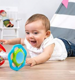 При использовании этой погремушки у малыша развиваются общая моторика, зрительно-моторная координация, аудиовизуальное восприятие.