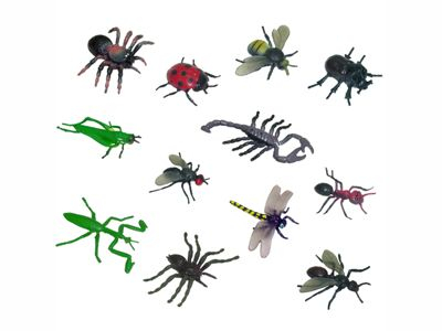 В комплекте контейнер с крышкой и 12 фигурок насекомых с реалистичным изображением и пропорциями, включая