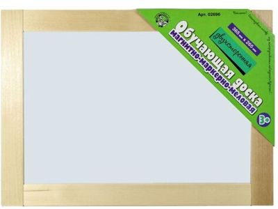 Небольшие размеры доски 365х265 мм делают ее удобной в использовании и хранении. Двухстороннее жесткое игровое поле заключено в неокрашенную рамку из дерева. Лицевая поверхность выполнена из лакированной жести для рисования маркером на водной основе, а также для различных магнитных игр и мозаик. Противоположная сторона предназначена для рисования мелом.