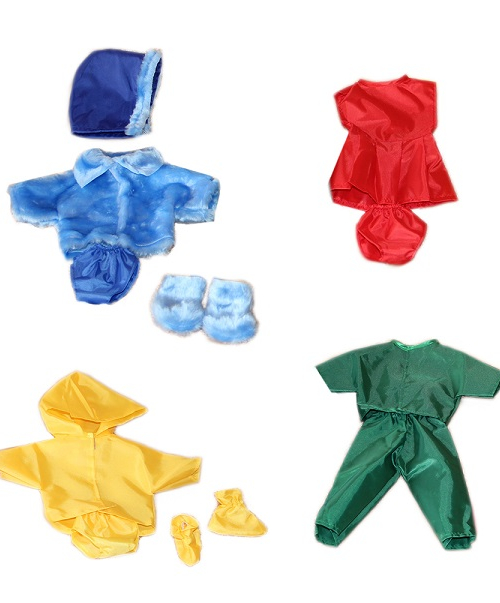 Комплект дидактической одежды для кукол "4 сезона" с шубой является уменьшенной копией типичной одежды на каждое время года. Подходит для куклы размером примерно 37-39 см. Комплект выполнен с вниманием к деталям из качественного, прочного материала. Прослужит долго, ведь расчитан на переодевания во время игр. В комплект входят следующие предметы одежды и аксессуары: ЗИМА-шуба с капюшоном, валенки, трусики; ОСЕНЬ - куртка с капюшоном, брюки; ЛЕТО - платье, трусики; ВЕСНА - плащ, сапожки, трусики. Использованные материалы: оксфорд 100% ПЭ, мех искусственный.