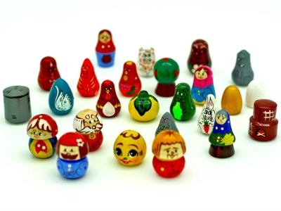 В набор входят персонажи следующих сказок: Курочка Ряба, Репка, Колобок, Гуси -Лебеди, Маша и Медведь, Теремок и Лубяная Избушка.