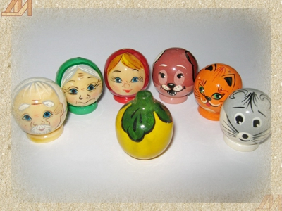 состоит из 7 фигурок в виде наперстков, изображающих персонажей сказки: Дед, бабка, внучка, кошка, собака, мышка, репка..