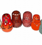 Кукольный театр состоит из деревянных фигурок ручной росписи – героев сказки “Заюшкина избушка”.