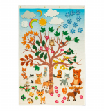 Игровое поле 86*59см, фигурки листья (зелёных, жёлтых и красных цветов), облака, радуга, снежинки, дождик, луна, солнышко, цветочки, грибочки, ягодки, а также животные и птицы. Фигурки от 3*3см до 14*15см