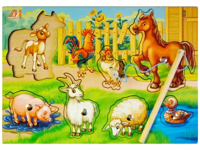 Рыбалка-пазл “Чей малыш? Домашние животные” знакомит детей с обитателями фермы.
