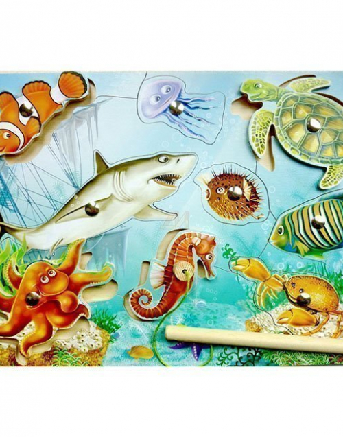 В комплекте: картинка “Море” с девятью магнитными вкладышами, удочка, инструкция.