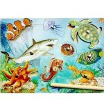 Но во время рыбалки можно, оказывается, поймать не только рыбу, но и морского конька, черепаху, краба. Вытащите все фигурки на стол. Предложите ребенку для начала найти каждому животному, назвав его, свое место на морском дне.