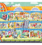 Тематика: На иллюстрации изображен торговый центр в разрезе: здесь можно увидеть, как люди делают покупки, общаются в кафе, гуляют с детьми, выбирают одежду и наслаждаются развлечениями. Каждая деталь пазла — это возможность для изучения и обсуждения повседневной жизни, социальных ситуаций и профессий.