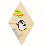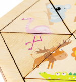 Ребёнку предстоит собрать пазл из 24 деревянных фишек, чтобы восстановить разбитые на части картинки 30 милых зверьков. Сделать это не так просто, ведь каждый пазл содержит части сразу несколько картинок.