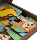 - 8 пазлов из древесного материала из 3 элементов каждый.