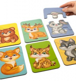 Соединяя части изображения, ребёнок составляет яркую картинку с изображением лесных жителей.