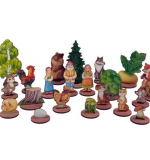 Состав набора включает :Береза – 1 шт., Ель – 1 шт., Куст – 1 шт., Одуванчик – 1 шт.,, Репка – 1 шт., Яйцо белое – 1 шт., Яйцо золотое – 1шт., Колобок – 1 шт., Пенек – 1 шт., Гриб боровик – 1 шт., Гриб мухомор – 1 шт., Медведь – 1 шт., Волк – 1 шт., Лиса – 1 шт., Заяц – 1 шт., Мышь – 1 шт., Собака – 1 шт., Кошка- 1 шт., Петух – 1 шт., Курица – 1 шт., Дед – 1 шт.Бабка – 1 шт., Внучка – 1 шт., Туесок – 1 шт.