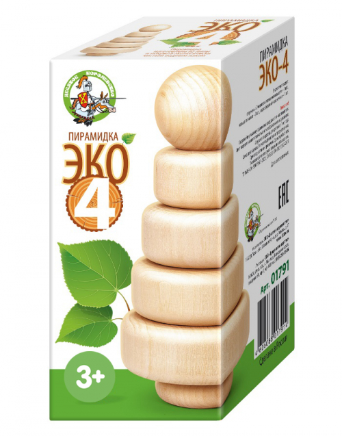 Деревянная пирамидка «Эко-4» развивает координацию движений рук, точность глазомера, интеллектуальные способности, мышление, логику, память, сообразительность, мелкую моторику, тактильные ощущения и усидчивость, а также способствует пониманию таких значений, как «больше-меньше»