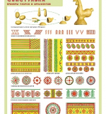 Филимоновская свистулька. Примеры узоров и орнаметов. Плакат
