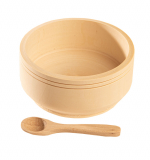 Деревянная плошка с ложкой для разнообразных игр с куклами.