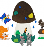Интересный набор для ковролинового кукольного театра на плоскости для разыгрывания сказки Под грибом в полном комплектации – не только персонажи, но и аксессуары. Сюжетные и дидактические игры с этой многоразовой аппликацией используются на занятиях в детских садах, одобрены специалистами, потому что помогают увлечь ребёнка и развивать память, внимание, речь, логику и мелкую моторику, кругозор.