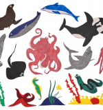 Игровое поле 28*45см, осьминог, касатка, морской котик, тюлень, кит, акула, скат, медуза, морской конек, дельфин, мурена, морская звезда, рыбки, кораллы, водоросли.