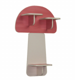 Описание: Полочка состоит из двух частей: нижняя часть в виде ножки гриба белого цвета, внизу которой полка на консоли зеленого цвета. Верхняя части полки - панель в виде шляпки гриба красного цвета, на которой закреплены две полочки на консолях белого цвета. Полочки располагаются на разной высоте.