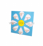 Описание: Цвет панели голубой, лепестки из клеевой пленки белого цвета, на каждом лепестке полочка на консоли белого цвета, общее количество лепестков - 8. В центре - желтый круг из клеевой пленки.