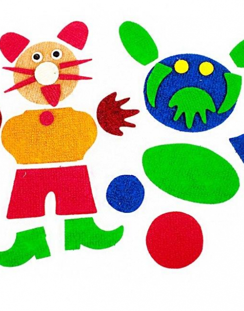 28 игровых элементов разных размеров, цветов и форм на многоразовых липучках;