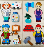 Познакомить детей с миром профессий и рассказать об особенностях каждого вида деятельности вам поможет красочная двухуровневая мозаика серии «Профессии». Врач, парикмахер ,художник, строитель собираются из трёх элементов, а второй уровень поможет узнать орудия труда и инструменты, нужные людям этих профессий, а также научит правильно их соотносить к каждой из них. (например,Врач: чемоданчик,таблетки, машина "Скорой помощи", градусник.)