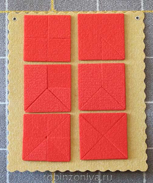 36 элементов из ковролина красный цвет: (многоугольник 1 – 1 шт., многоугольник 2 – 1 шт., многоугольник 3 – 1 шт., многоугольник 4 – 1 шт., треугольник маленький – 10 шт., треугольник средний – 7 шт., треугольник большой – 2 шт., квадрат большой – 1 шт., прямоугольник – 2 шт., трапеция 1 - 3 шт., трапеция 2 – 1 шт., квадрат маленький – 6 шт.;
